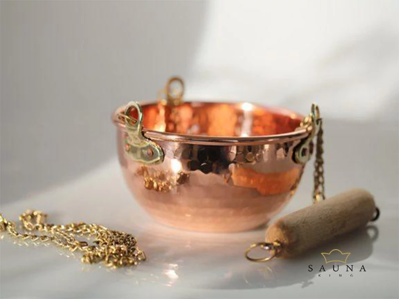 Kupfer ist ein Naturprodukt und entwickelt mit der Zeit eine natürliche Patina. Schön zu beobachten ist die Verfärbung des Kupfers, wenn sich die Schale erhitzt. Ein Blickfang in jeder Sauna, ideal zum Verdampfen. Einfach die Schale mit etwas Wasser befüllen, Kräuter, Solebrocken oder Duftöle von Finnsa dazugeben